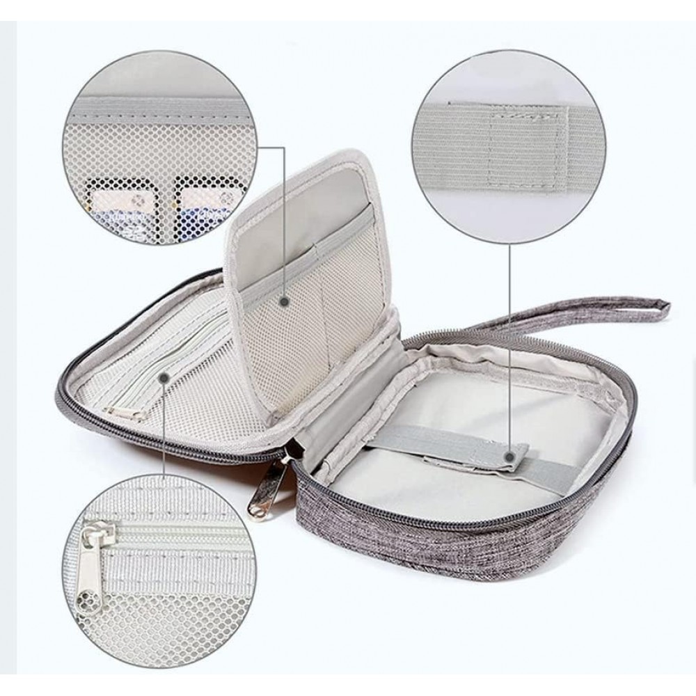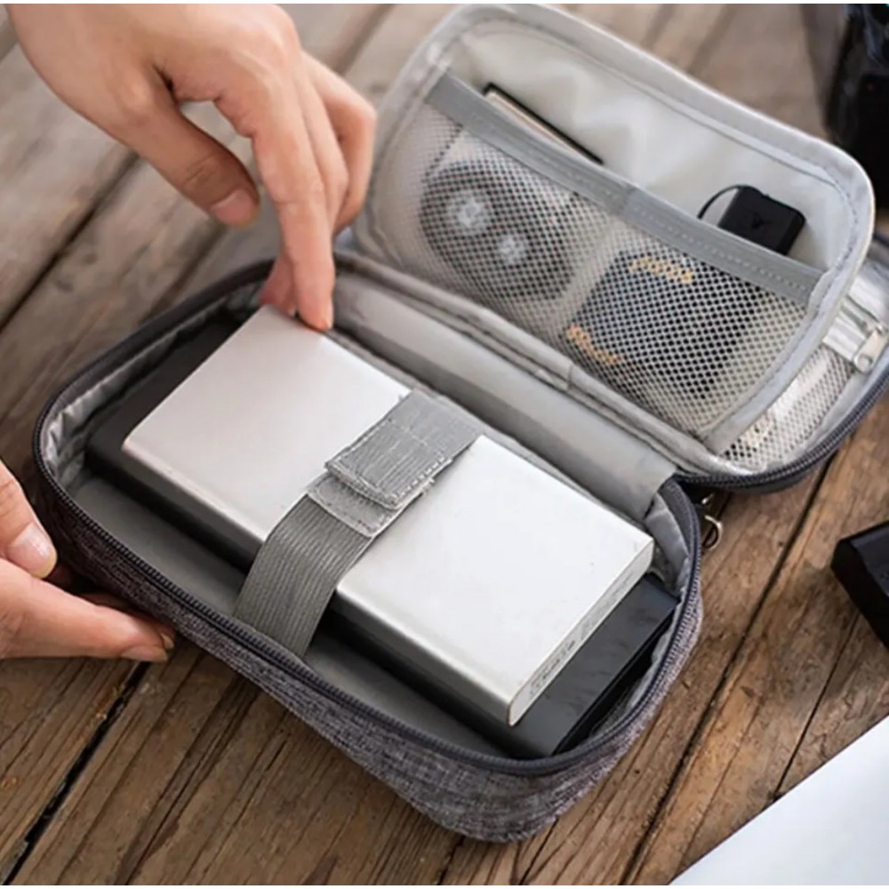 Благодаря двухслойной конструкции органайзер вмещает кабели, пауэрбанк, флешки, SD-карты, мышку, адаптеры и другие мелкие гаджеты. Эластичные фиксаторы, сетчатые карманы и отделения на молнии позволяют удобно разместить каждый аксессуар отдельно.