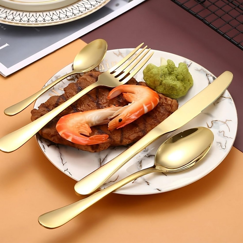 Набор столовых приборов Royal Gold — это воплощение аристократического стиля и безупречного качества. Выполненный в роскошном золотом цвете с идеальной зеркальной полировкой, этот комплект мгновенно превращает обычный ужин в королевский прием. Главным преимуществом серии Royal является сочетание утонченной эстетики и практичности, что делает его идеальным выбором как для праздничной сервировки, так и для ежедневного использования.