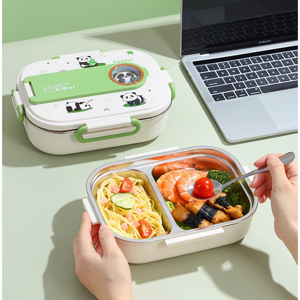 Ланч-бокс для детей 1000 мл на 2 отделения, нержавеющая сталь, герметичный, Mai Panda