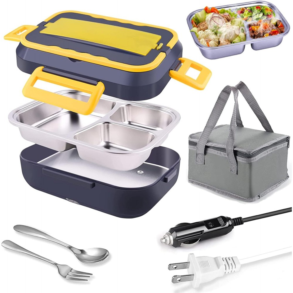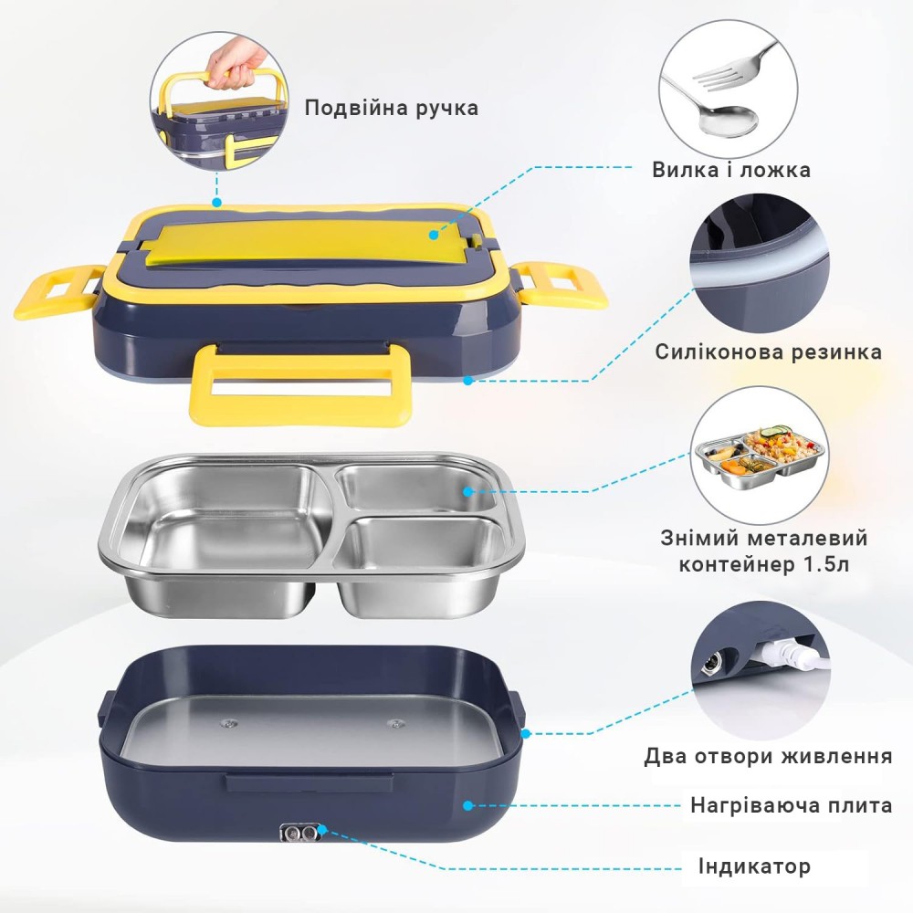 Ланч-бокс с подогревом Volt 12В/24В/220В + термосумка и приборы, судочек для обеда в авто и офис 1.5л, синий
