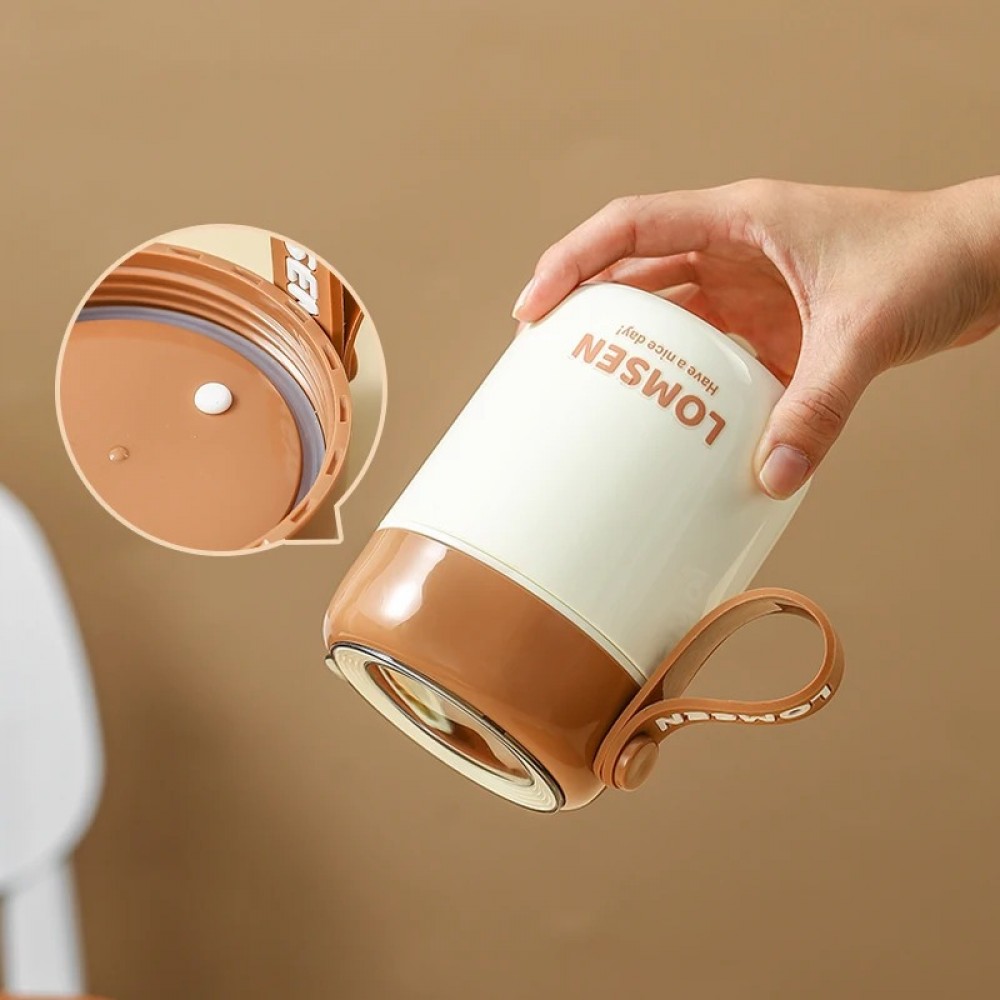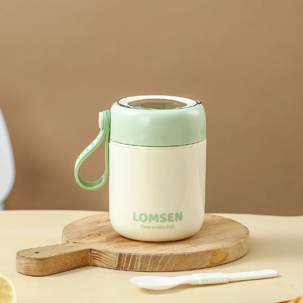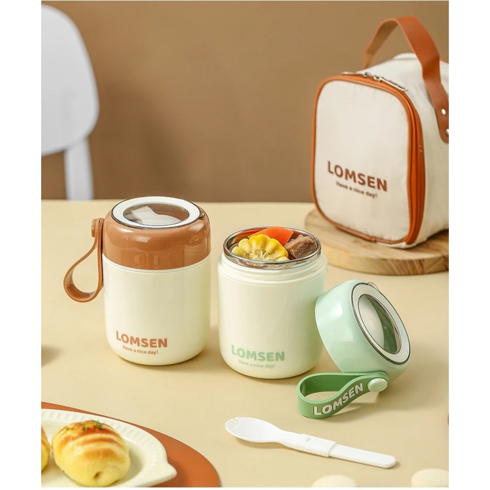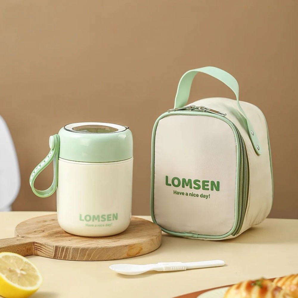 Функциональный ланч-набор 3-в-1: термобокс, ложка и термосумка для удобной и безопасной транспортировки еды.