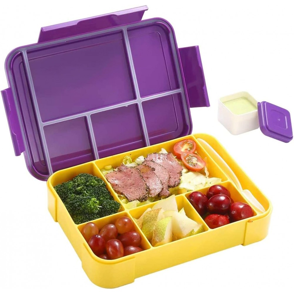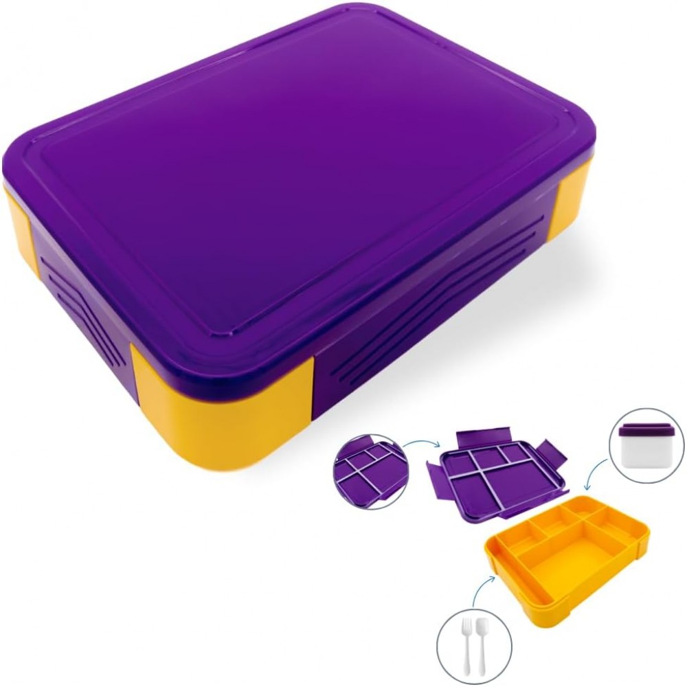 Герметичный, качественный ланч-бокс для детей и взрослых на 5 отдельных от друг друга отсеков (еда не смешается). В комплекте есть приборы в отдельном отсеке и маленькая соусница. Герметичность секций ланч-бокса обеспечивает крышка с силиконовой резинкой, которая не дает блюдам перемешиваться, такой ланч-бокс можно носить в сумке на боку.