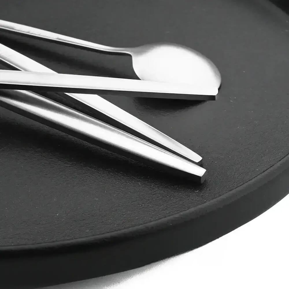 Премиальный набор столовых приборов Flat на 24 предмета создан для ежедневного использования и особых случаев. Лаконичный дизайн с плоской ручкой выглядит современно и аккуратно, хорошо сочетается с любой сервировкой и посудой.