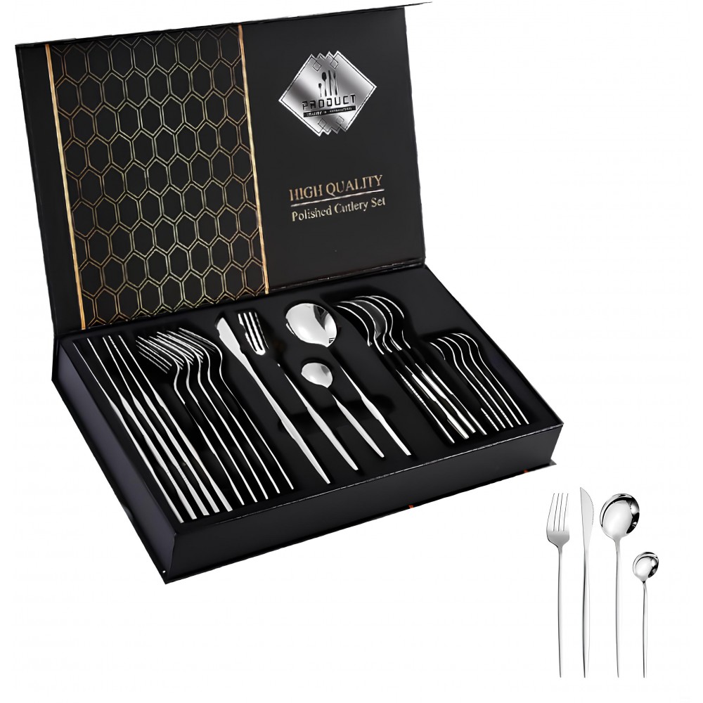 Набор подходит для дома, ресторана, кафе, праздничной сервировки, подарка или использования на мероприятиях. Приборы можно мыть в посудомоечной машине, что упрощает уход и экономит время.