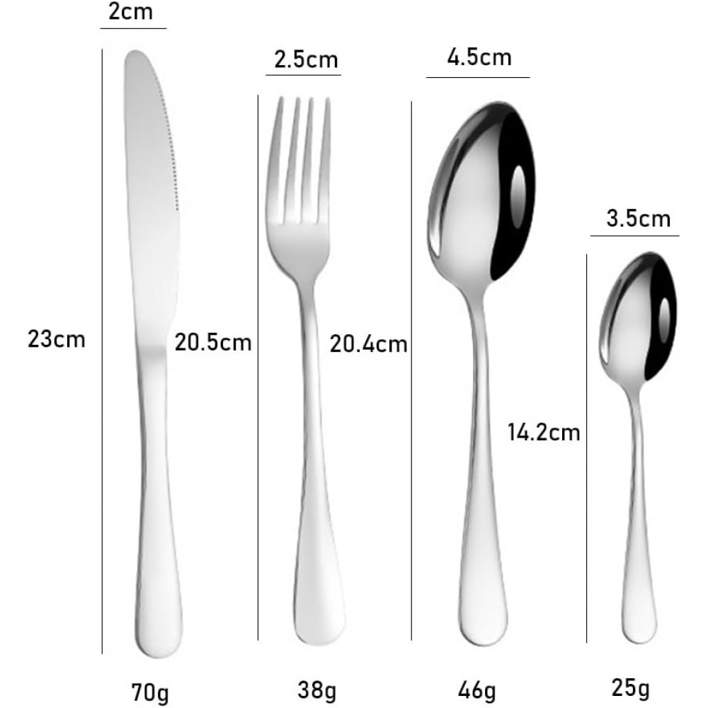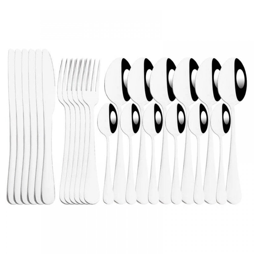 - Комплектация: ложка столовая (6 шт), вилка (6 шт), нож (6 шт), ложка чайная (6 шт).
