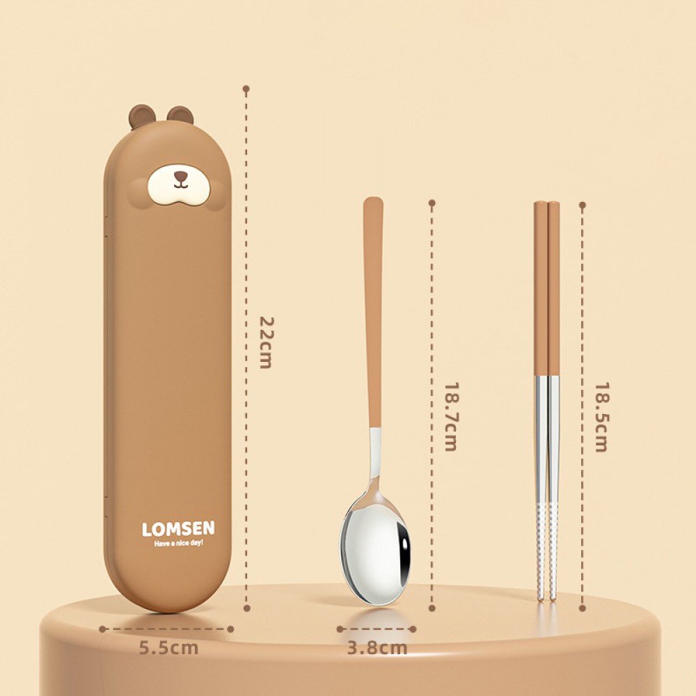Приборы изготовлены из пищевой нержавеющей стали 304, устойчивой к коррозии и запахам, их легко мыть и удобно использовать каждый день. Компактный футляр с милым принтом легко помещается в ланчбокс, сумку или рюкзак.
