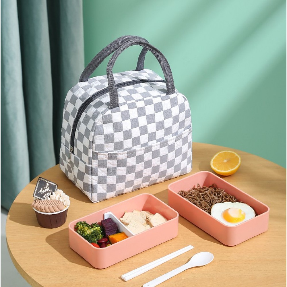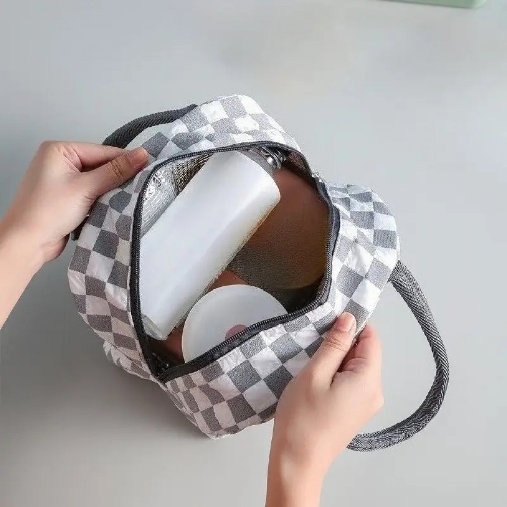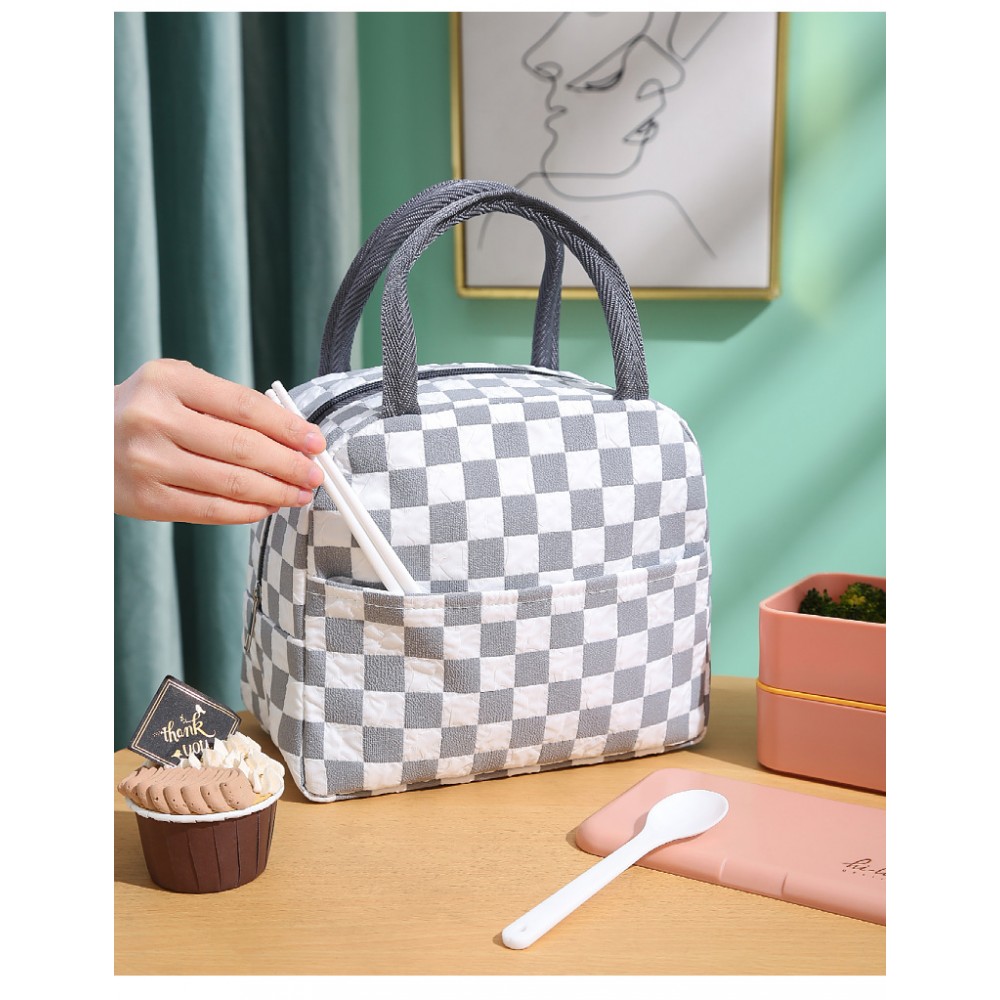 Chess Lunch Bag — стильная термосумка с шахматным принтом для ежедневного использования: на работу, в офис, в школу, в поездки, на пикник или на пляж. Внутренний изоляционный слой помогает дольше сохранять еду тёплой или прохладной, а компактный размер делает сумку удобной для повседневного ношения.