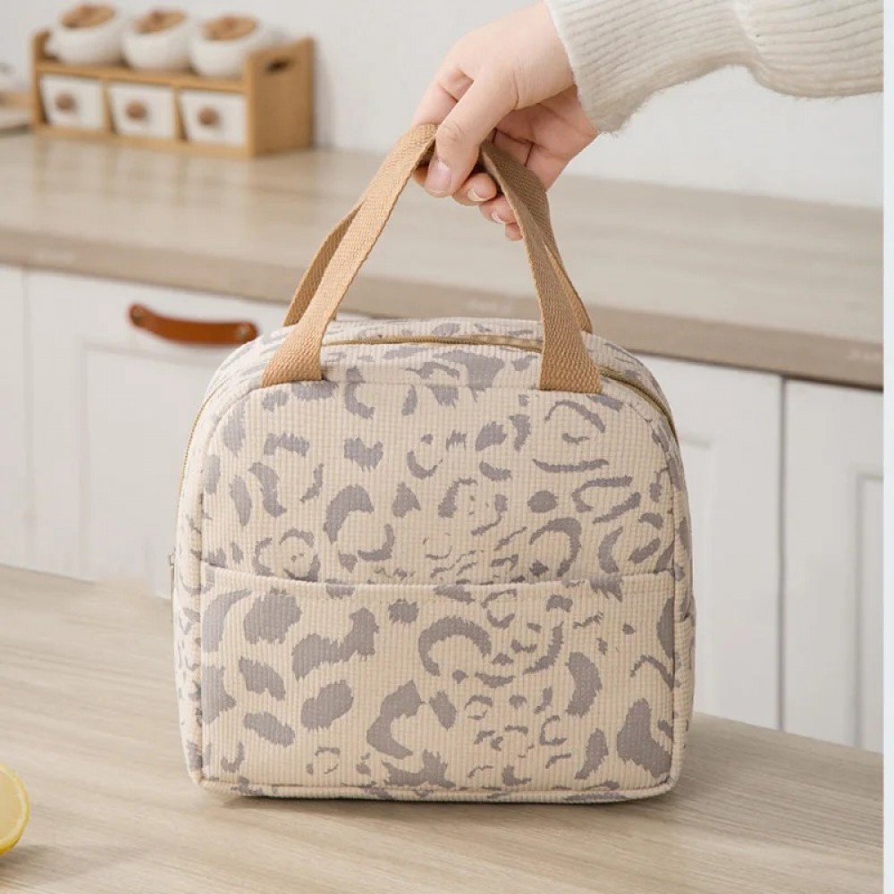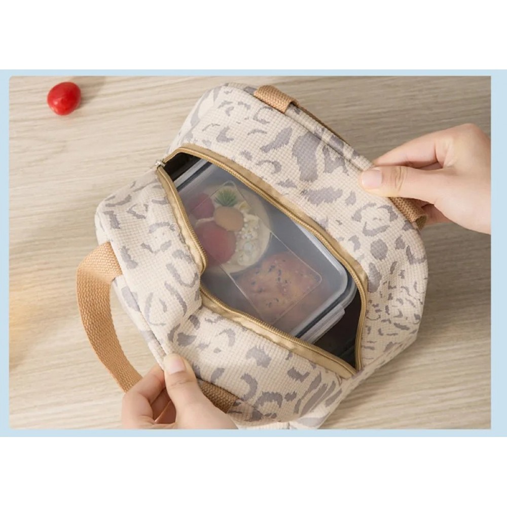 Leopard Lunch Bag — стильная термосумка с леопардовым принтом для ежедневного использования: на работу, в офис, в школу, в поездки, на пикник или пляж. Внутренний изоляционный слой помогает дольше сохранять еду тёплой или прохладной, а компактный размер делает сумку удобной для повседневного ношения.