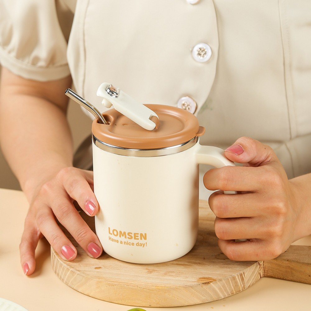 Крышка с силиконовым уплотнителем обеспечивает пылезащиту и препятствует протеканию при обычном использовании. Можно пить прямо из кружки или использовать трубочку. Широкое горлышко облегчает наполнение и мытьё.