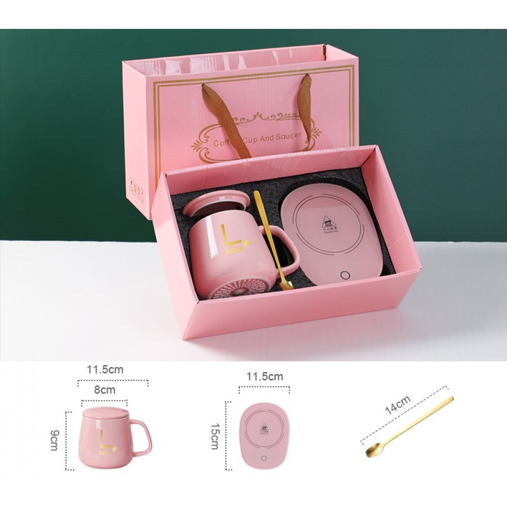 Этот набор включает керамическую чашку объемом 450 мл с крышкой, которая сохраняет тепло, и элегантную ложку из латуни, что добавляет изящества. Подставка для подогрева автоматически включается, когда вы ставите чашку, и выключается, когда ее снимаете, обеспечивая максимальное удобство в использовании.
