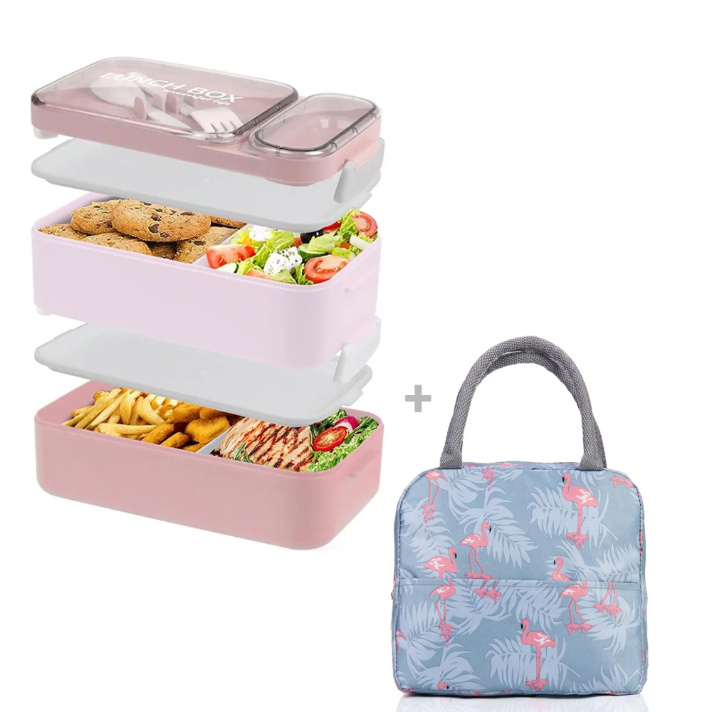 Набір ланчбокс 2-ярусний 1.6 л для мікрохвильовки з термосумкою Flamingo, рожевий