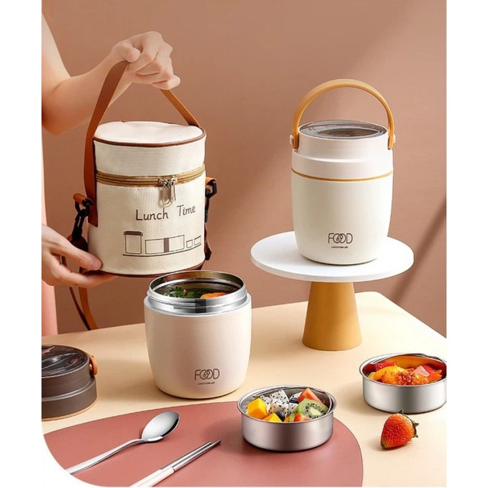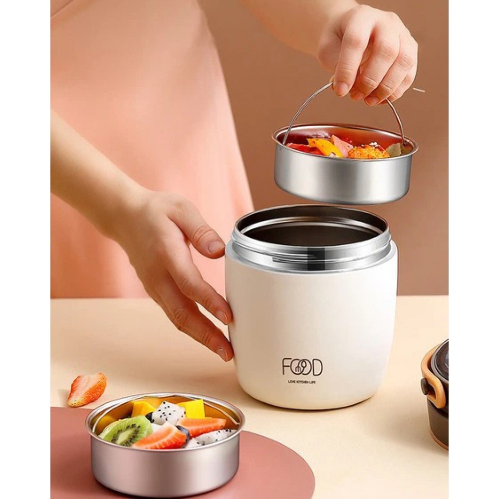 Термо ланч-набір Food Time створений для зручного та повноцінного харчування поза домом. Компактна форма та продумана багатоярусна конструкція дозволяють брати з собою гарячі страви, супи, снеки або фрукти. Стінки з нержавіючої сталі утримують тепло, а щільна кришка зберігає аромат і захищає від протікань.