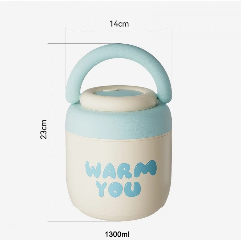 Практичный вакуумный термос-ланчбокс объёмом 1.3 литра — идеальное решение для горячих обедов в дороге, на работе, в школе или на пикнике. Благодаря внутренней колбе из пищевой нержавеющей стали 304 и вакуумной изоляции, еда остаётся горячей до 4 часов, тёплой — до 6–8 часов.