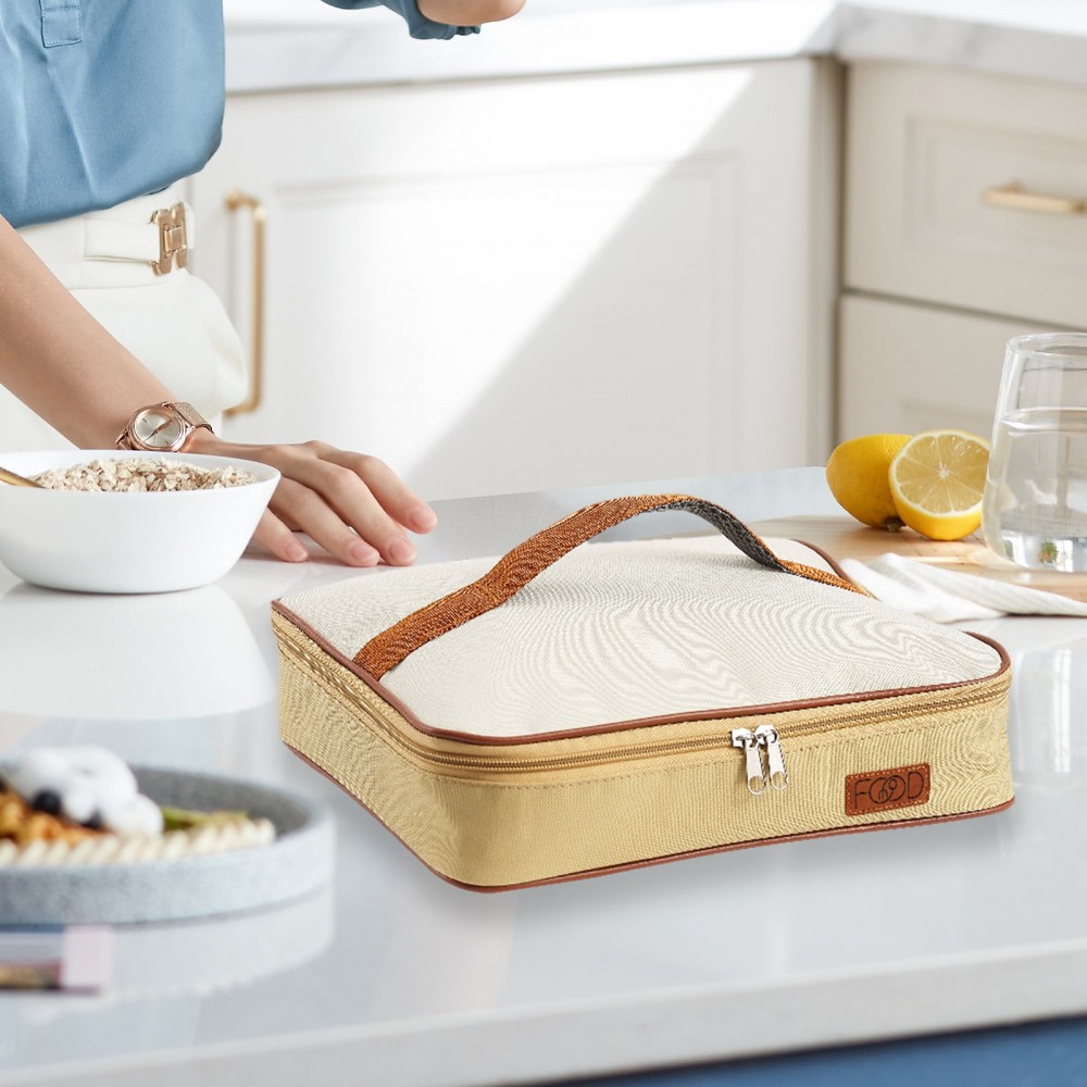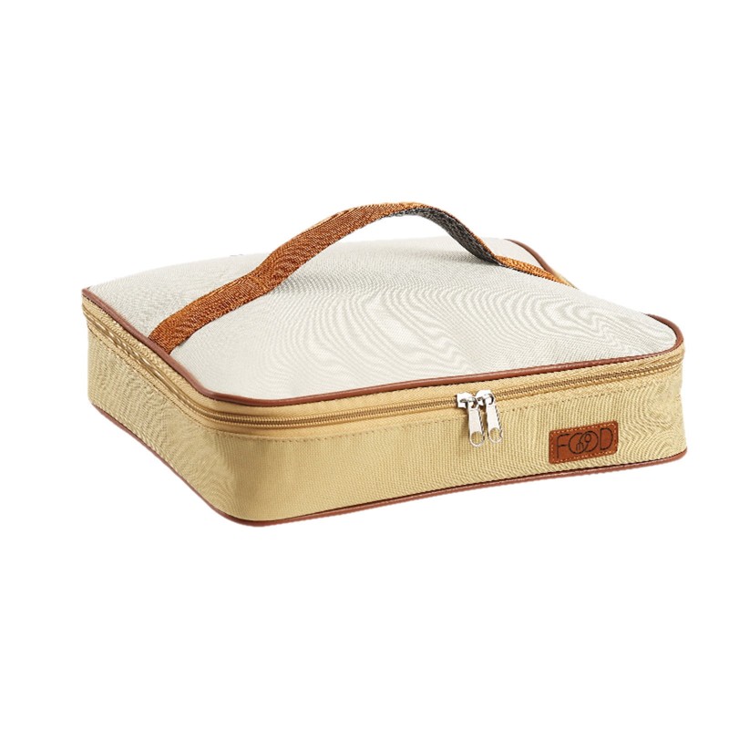 Термосумка для великих пласких ланч-боксів Beige Flat L, плоска сумка-холодильник для їжі з собою