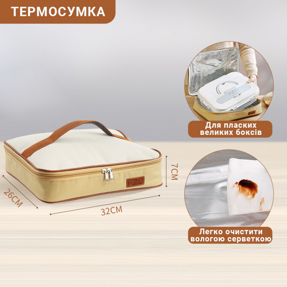 Технічні характеристики Термосумка для великих пласких ланч-боксів Beige Flat L, плоска сумка-холодильник для їжі з собою