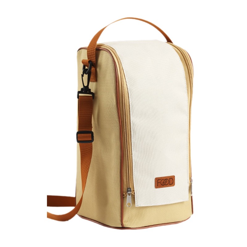 Термосумка Beige Food L — стильна та містка вертикальна сумка-холодильник, створена для високих ланчбоксів, пляшок та обідів з собою. Підійде для роботи, навчання, прогулянок, пікніків і подорожей.