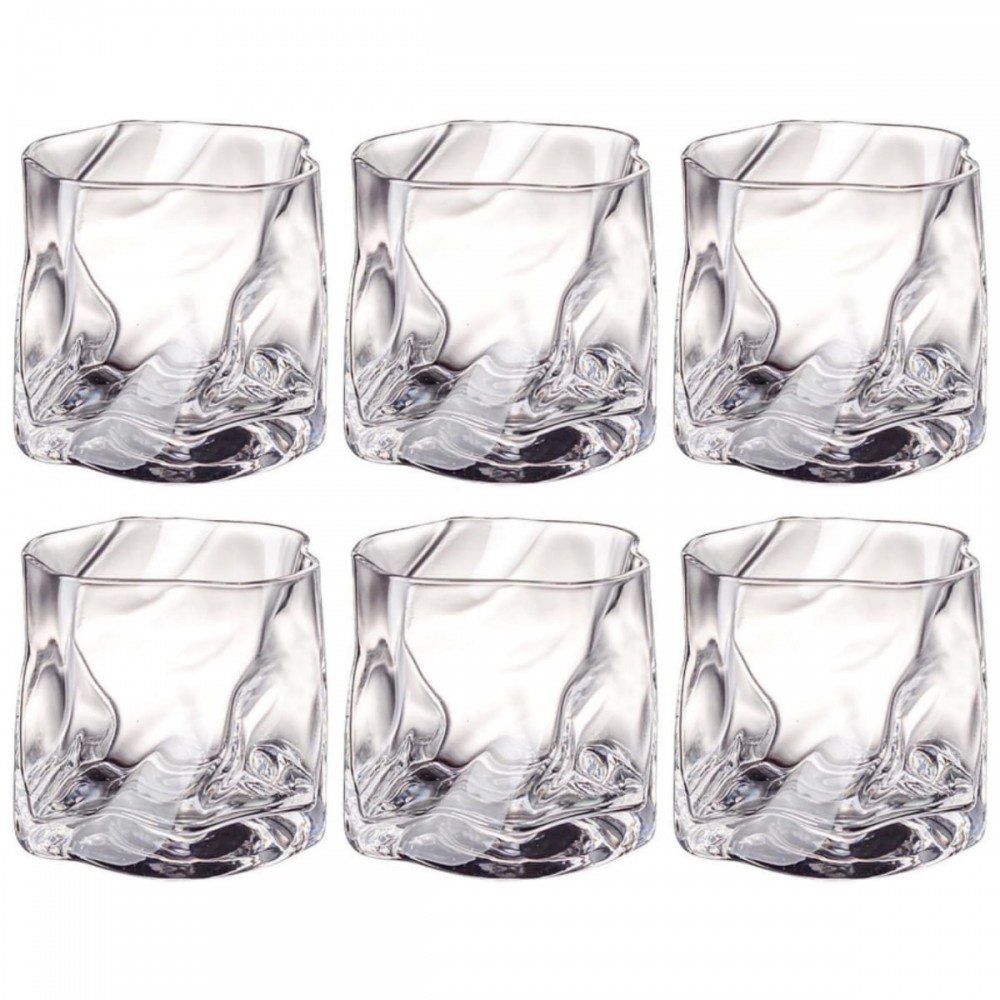 Набір із 6 дизайнерських склянок XS Old Fashion оригінальної хвилястої форми об’ємом 150 мл. Підійдуть для віскі, рому, лікерів, десертних вин, а також безалкогольних напоїв. Завдяки вигнутому склу склянка зручно лежить у руці, а напій у ній виглядає особливо вишукано та ефектно.