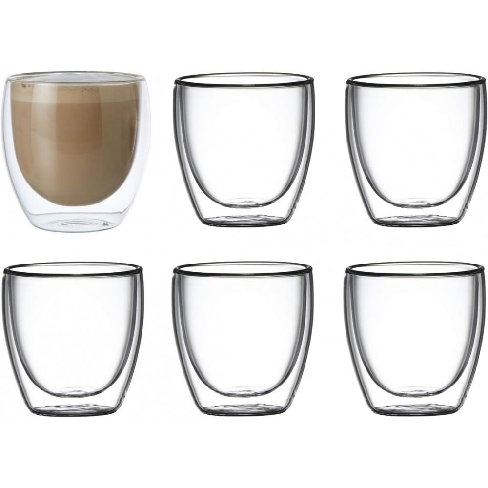 Набір скляних термостаканів Classica Java об’ємом 250 мл — це 6 стильних склянок із подвійними стінками, виготовлених з термостійкого боросилікатного скла. Завдяки сучасному дизайну напій виглядає так, ніби він «парить у повітрі», а подвійні стінки зберігають температуру гарячих і холодних напоїв значно довше, ніж звичайний посуд.